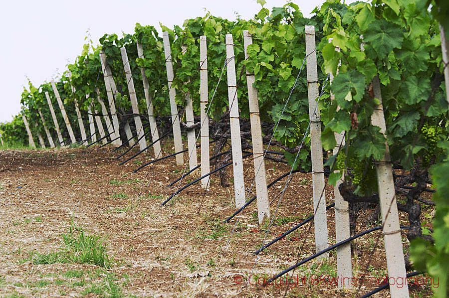 Strong trellises and well-maintained vineyard infrastructure support efficient vine training and harvest operations.